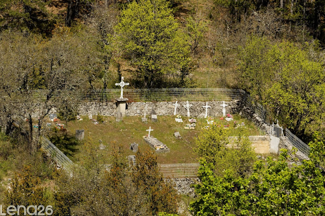 Le cimetière nous l'apercevons d'ailleurs sur le versant d'en face. Isolé il donne l'impression de ne plus beaucoup être utilisé